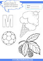 Потом дописать букву М и прочитать. И в конце закрасить части мозаики с буквой М.