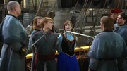 В Зачарованном лесу Белль открывает кабинет, когда ее удивляет Румпельштильцхен, рано вернувшийся из Камелота. Он утверждает, что проверял ее, чтобы увидеть, что она будет делать с его уходом. Затем он дарит Белль перчатку, которая может обнаружить слабость в человеке. Он говорит, что для большинства людей слабость — это то, кого они любят, и это укажет ему правильное направление, таким образом, использование перчатки. Позже Белль подает чай Румпельштильцхену, объясняя, почему он собирает предметы, только для того, чтобы отправить Белль постирать и высушить его белье. Затем Белль замечает щенка далматина и следует за ним, но ее похищает фигура в меховом плаще.