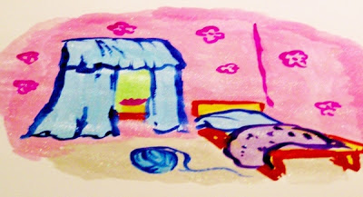 нити. Девочка начала бегать по дому и искать, не осталось ли голубых лоскутков.