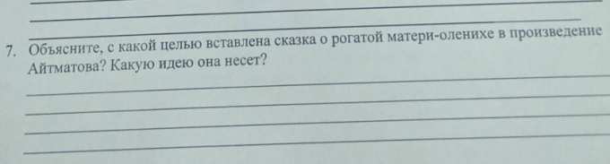7. Объясните, с какой целью вставлена сказка о рогатой матери-оленихе в произведение Айтматова? Какую идею она несет? 50 БАЛЛОВ