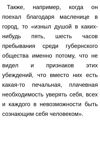 В Париже нам стало скучно, мы без интереса ходили по выставкам. Насмотревшись на английскую «правду» и на трупы коммунаров, олицетворявшие «правду» французскую, я утром пошел гулять в самом ужасном расположении духа и набрел на Лувр. Там я остановился у Венеры Милосской. Раньше я был похож на скомканную перчатку, а теперь меня будто бы наполнили воздухом. С того дня я часто стал приходить в Лувр, но никак не мог понять, как же скульптура способна «выпрямить» человеческую душу. Теперь я по-другому смотрел на предыдущие выводы. Какое может быть человеческое достоинство у лакея? Прислуживать — это оскорбление человека в принципе. Это не «правда», это «неправда». Нет ничего естественного в каторжном труде. Человек этим изуродован. Я вспоминал стихи Фета «Венера Милосская». Фет не понял Венеры, воспевая в ней просто женскую красоту. Но скульптор не хотел демонстрировать красоту женского тела. Он не думал о поле, возрасте. Цель его была — выпрямлять скомканные души.