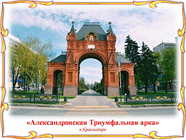 Среди самых красивых достопримечательностей Краснодара стоит отметить Александровскую триумфальную арку, или Царские ворота, как ее еще называют. Ее решили восстановить в 2006 году совместно с памятником Екатерине Великой, как одну из исторических достопримечательностей города, отражающих его богатую историю. Ее восстановлением занимались лучшие архитекторы города, так как никаких чертежей не сохранилось и приходилось воссоздавать ее по фотографиям.