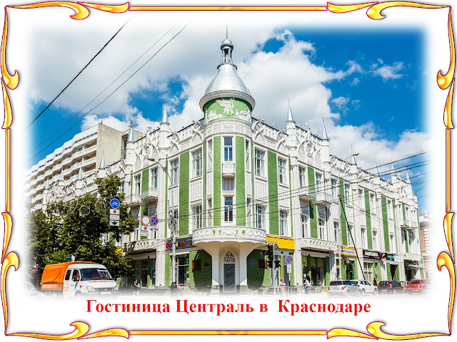 Гостиница Централь. В самом центре Краснодара, на перекрестке улиц Красной и Гимназической, располагается архитектурный памятник XIX века и одна из главных достопримечательностей Краснодара — здание бывшей гостиницы «Централь». Зданию, в котором и сейчас находится гостиница Централь, более 100 лет. При реставрации здания постарались сохранить не только вид, но и дух помещения. Фасад здания охраняется государством.