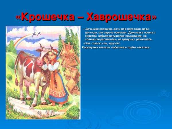 Представьте себе, как был бы беден народ, у которого не было бы сказок? Не было бы в людях с детства заложенных той душевности, мягкости, взаимной любви, без чего из ребенка вырастали бы люди узких взглядов, не понимающие друг друга, круг деятельности которых крайне ограничен и охватывает только удовлетворение потребностей своего «я».