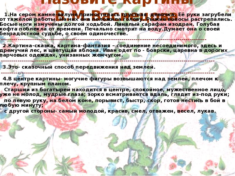 Назовите картины В.М.Васнецова