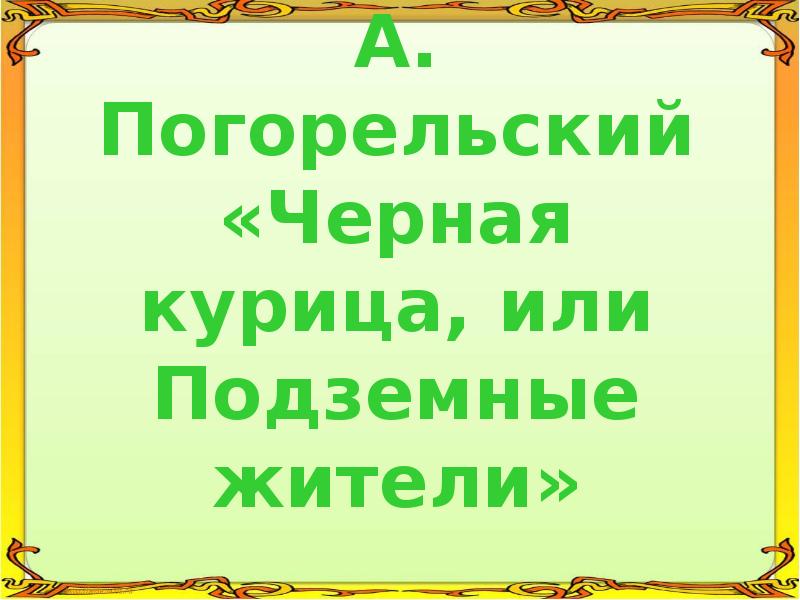 Презентация, доклад А. Погорельский «Черная курица, или Подземные жители»