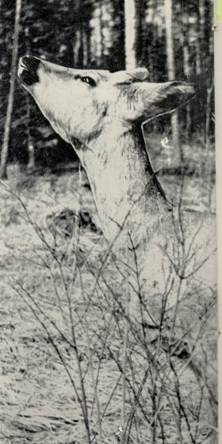 …По лесной поляне, ярко освещённой лучами низкого зимнего солнца, постепенно всё больше и больше удаляясь от тёмной стены пихтового леса, медленно движется, неторопливо обкусывая на ходу торчащие из-под снега сухие травянистые стебли, самка сибирского оленя — марала. Чу! — хрустнула позади ветка. Маралушка резко вскинула красивую точёную голову, большие уши-граммофоны сторожко повернулись в сторону подозрительного звука. Но всё тихо. Маралушка успокоилась, продолжает пастись.