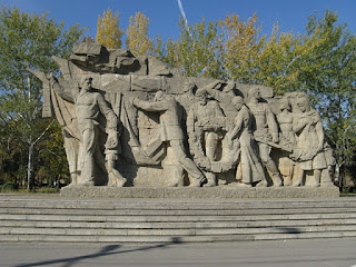 Во время Великой Отечественной войны Мамаев курган высотой 102 м имел стратегически важное значение. Оттуда можно было контролировать почти весь Сталинград и переправы через Волгу. За Мамаев курган 135 дней — с сентября 1942 г. по январь 1943 г. — шли ожесточенные бои. Здесь погибло более 30 000 красноармейцев.