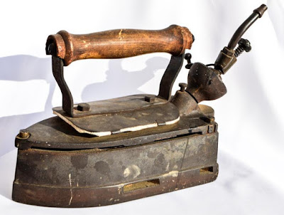 Были в обиходе и утюги со сменными чугунными вкладышами, которые раскаляли в печи. Вкладыши после нагревания вставляли внутрь полого корпуса утюга. Потом к вкладышу догадались приделать ручку, и получился цельнолитой утюг, который разогревали на плите.
