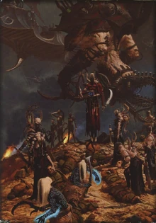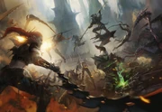 | Хотя Тёмный город самодостаточен и скрыт от любопытных глаз тех, кто находится за пределами Паутины, друкари необходимо непрерывно посылать членов своих воинских каст устраивать резню. Лишь за счёт проведения массовых налётов по всей Галактике им удаётся насытиться страданиями и обеспечить Комморру рабами и ресурсами для процветания. |