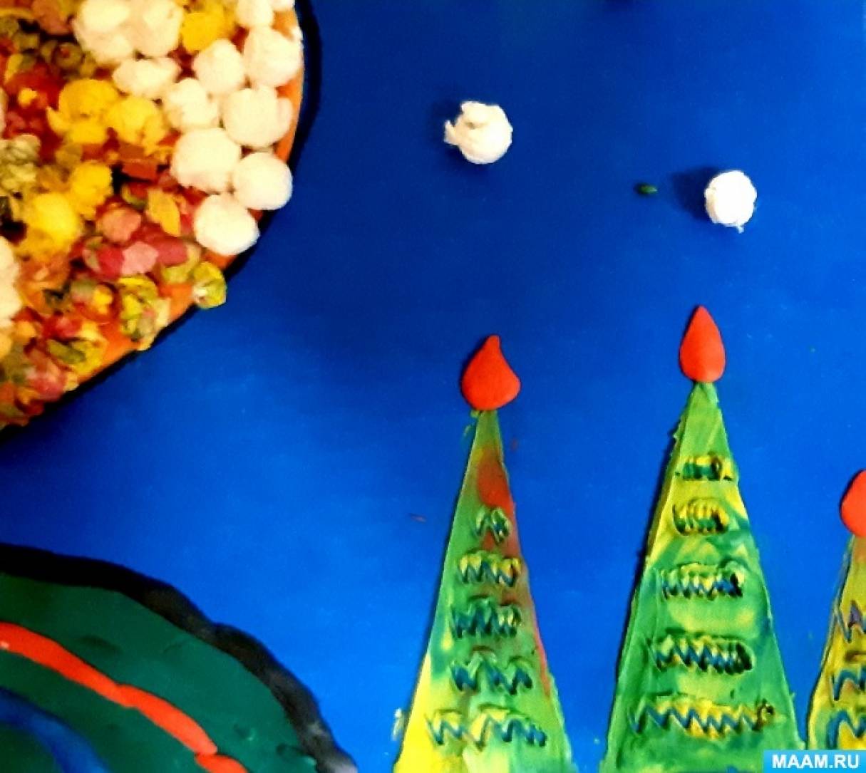 Окончательная отделка картины находится в зависимости от фантазии создателя. В нашем случае – это солнышко и башенки.